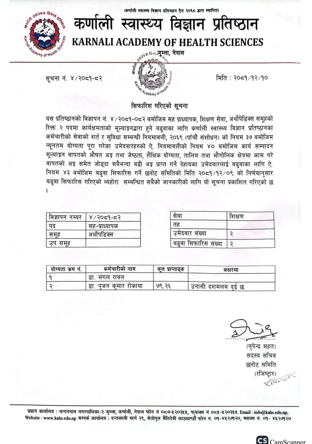 कर्णाली स्वास्थ्य विज्ञान प्रतिष्ठानलाई खुलापत्र