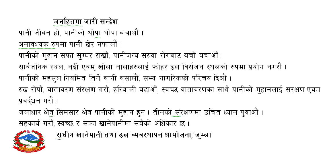 खानेपानी सिंचाई तथा उर्जाविकास कार्यालय, जुम्ला महिला जागरण । २३ जेष्ठ २०८२, शुक्रबार ०७:१४ मा प्रकाशित