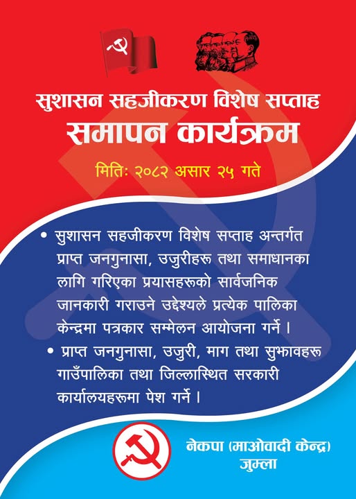 माओवादी केन्द्रद्वारा जुम्लाका सबै स्थानीय तहमा सुशासन सहजीकरण सप्ताह सम्पन्न