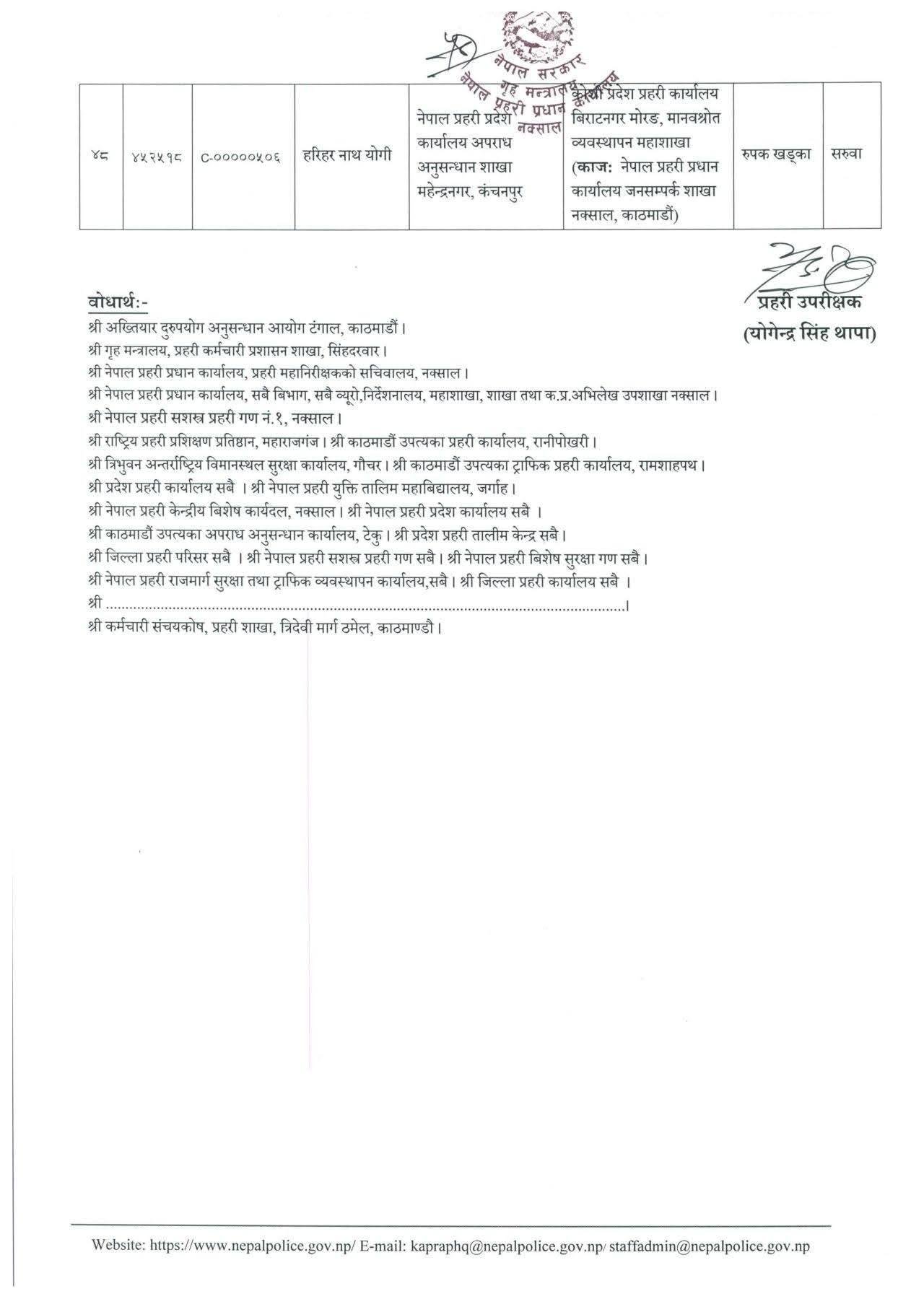 प्रहरीका ४८ जना एसपीको सरुवा, १४ जिल्लाका इन्चार्ज परिर्वतन [सूचीसहित]