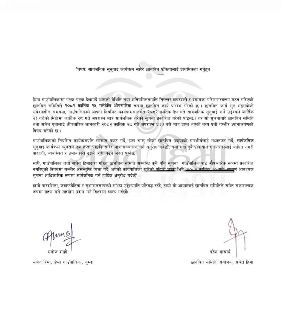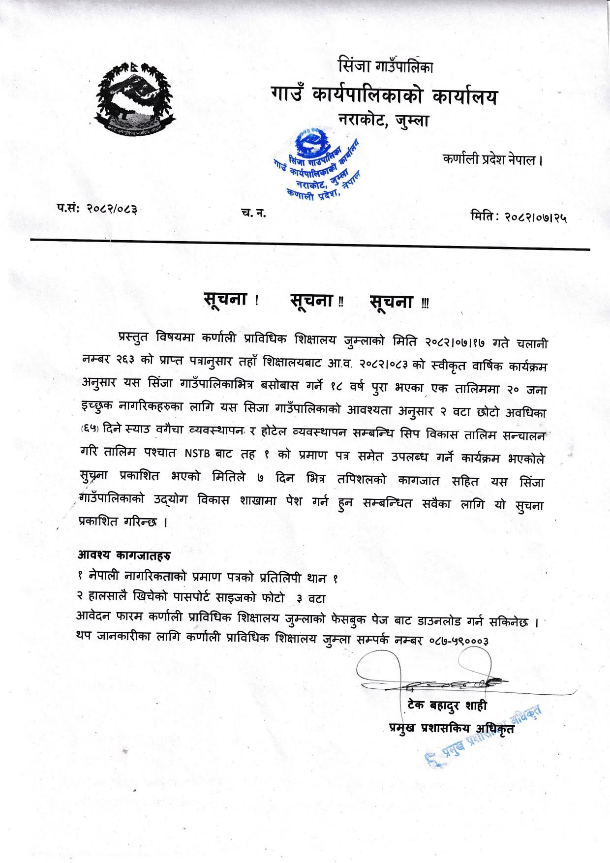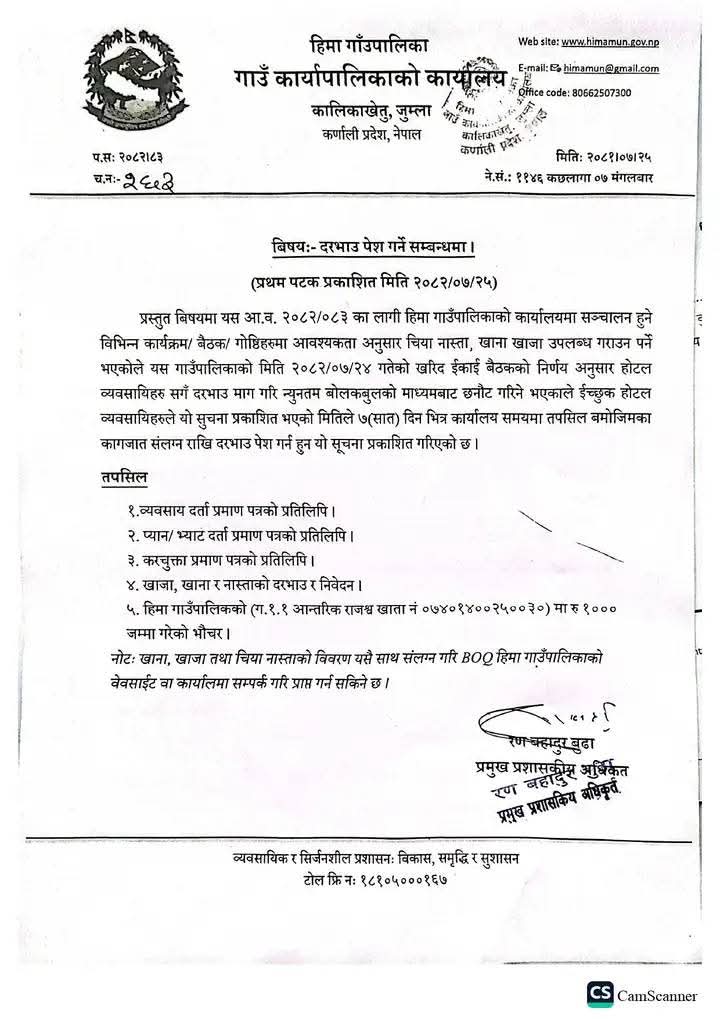 हिमा गाउँपालिकाको कार्यालय जुम्लाको सूचना