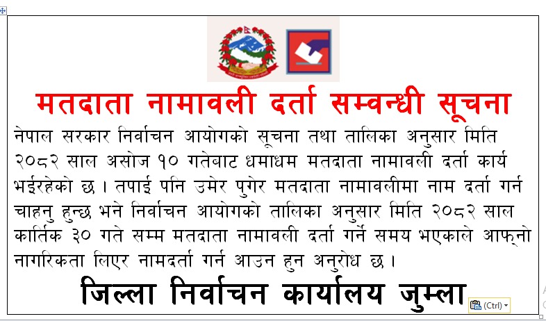मतदाता नामावली दर्ता सम्बन्धी सुचना