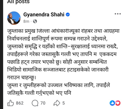 जुम्ला : जुम्लामा  शान्तिपूर्ण रूपमा  निर्वाचन सम्पन्न  भएको छ।  ५७.४४ प्रतिशत मत खसेको छ।